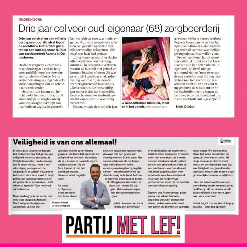 Volg ons op social media, deel onze berichten en vraag anderen hetzelfde te doen. Het kost maar een paar seconden, maar het maakt een wereld van verschil voor ons!Praat met buren, vrienden en familie over Partij met Lef!Samen bereiken we meer mensen!