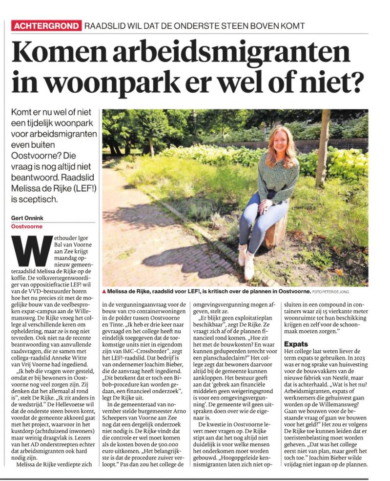 LEF! brengt zorgen van inwoners over naar het college en zet zich in voor de belangen van onze inwoners. Maar we hebben ook een controlerende taak.Wat recht is, is recht. Wat krom blijkt, moet rechtgezet worden!