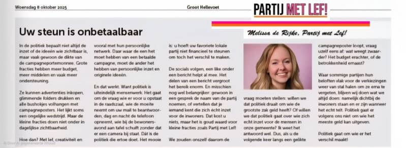 in de politiek bepaalt niet altijd de inzet of de ideeën wie zichtbaar is, maar vaak gewoon de dikte van de campagneportemonnee. Grote fracties hebben meer budget, meer middelen en vaak meer ondersteuning. Ze kunnen advertenties inkopen, glimmende folders drukken en alle bushokjes volhangen met campagneposters. Het lijkt soms een ongelijke wedstrijd. Maar de kleine fracties doen niet onder in dagelijkse zichtbaarheid. Hoe dan? Met lef, creativiteit en vooral met hun persoonlijke netwerk. Daar waar de een het moet hebben van een betaalde campagne, moet de ander het hebben van persoonlijke inzet en originele ideeën.